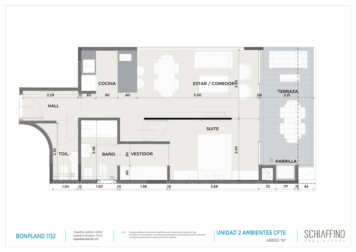 2º | 203 | Contrafrente | 48,90 m2 | 11,20 m2 | 60,10 m2 | 177.650 |